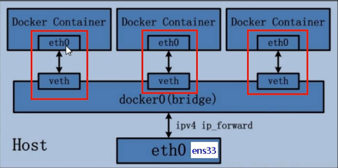 - docker0上面的每个veth匹配某个容器实例内部的eth0,两两配对,一一匹配
